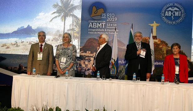 Dr. Gualter agradeceu a presença de todos e destacou a importância de valorizar a história da Associação e a contribuição dos ex-presidentes da ABMT. Ele também leu uma carta da Internacional Ocupacional Medicine Society Collaborative (IOMSC) parabenizando a ABMT pela longevidade, conquistas e promoção da educação continuada, além de de ter sido uma das entidades fundadoras da própria IOMSC, em 2013. Os ex-presidentes compartilharam suas experiências com a ABMT e o impacto nas suas atividades profissionais.