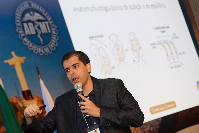 As principais síndromes vestibulares, em especial os principais tipos de tontura, foram apresentadas pelo especialista, assim como a origem, incidência maior em mulheres, e formas de identificação, como por exames otoneurológicos.